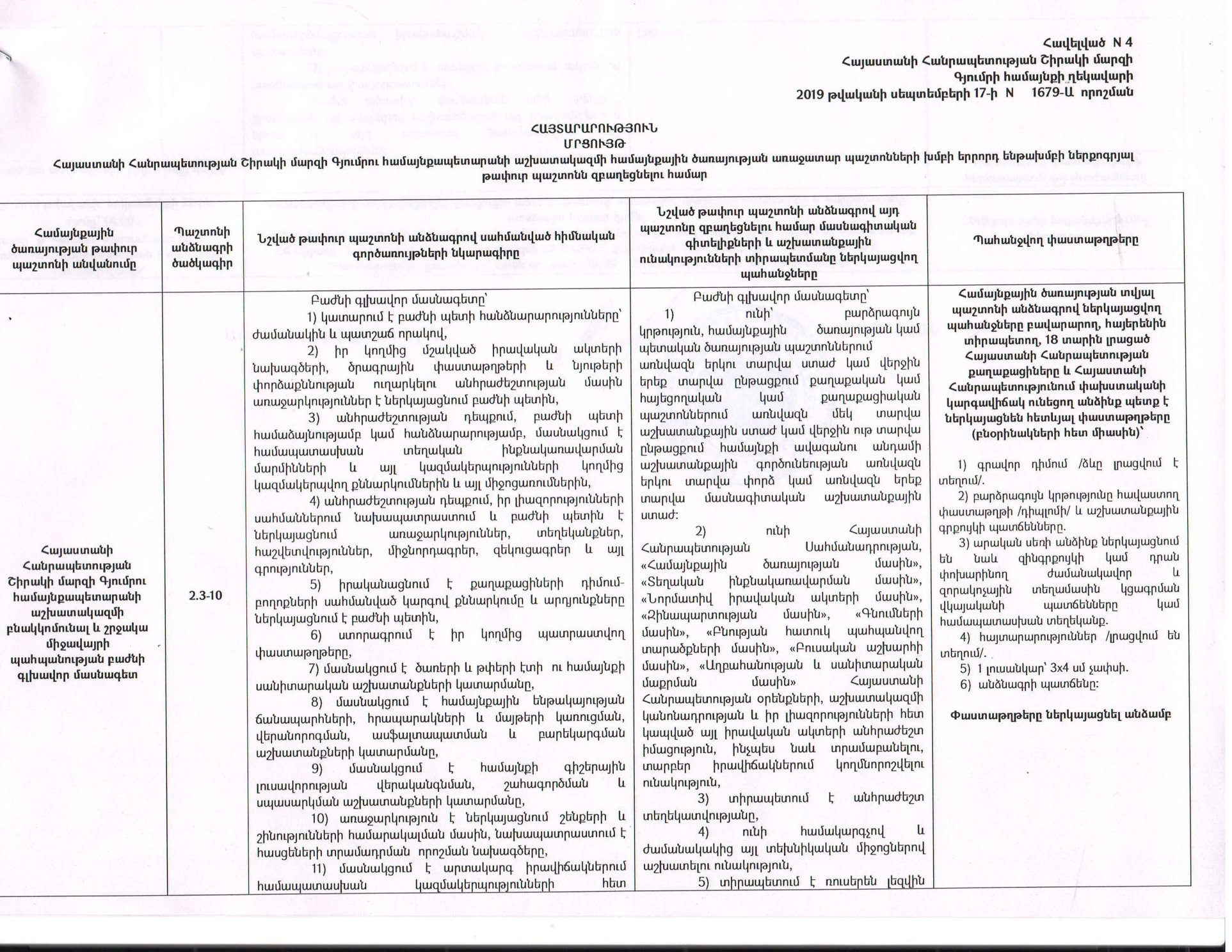 Գյումրու համայնքապետարանը հայտարարում է մրցույթ՝ համայնքապետարանի աշխատակազմի բնակկոմունալ և շրջակա միջավայրի պահպանության բաժնի գլխավոր մասնագետի թափուր պաշտոնի համար: