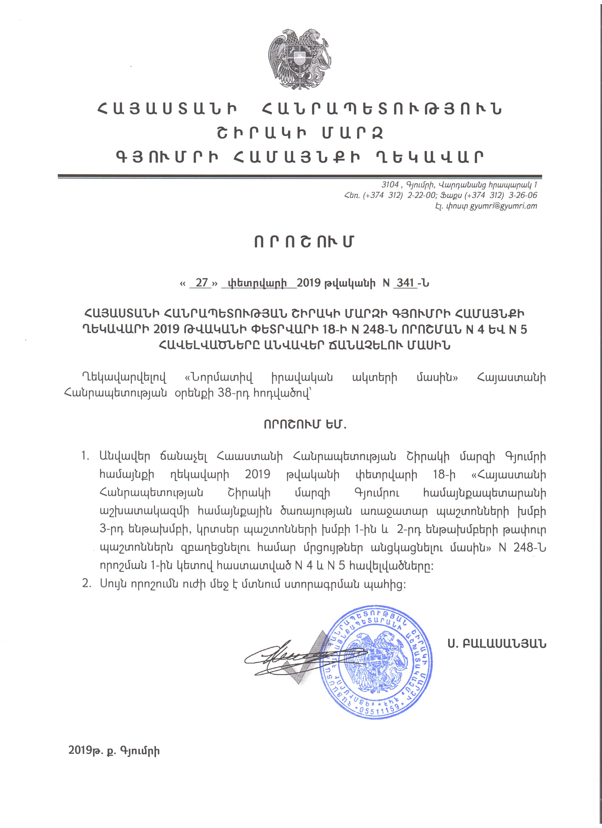 2019 թվականի մարտի 12-ին ժամը 12:00-ին Գյումրու համայնքապետարանի վարչական շենքում (Վարդանանց հր. 1, 2-րդ հարկ, նիստերի դահլիճ) կկայանա Գյումրի համայնքի ավագանու վեցերորդ նստաշրջանի հերթական երկրորդ նիստը: